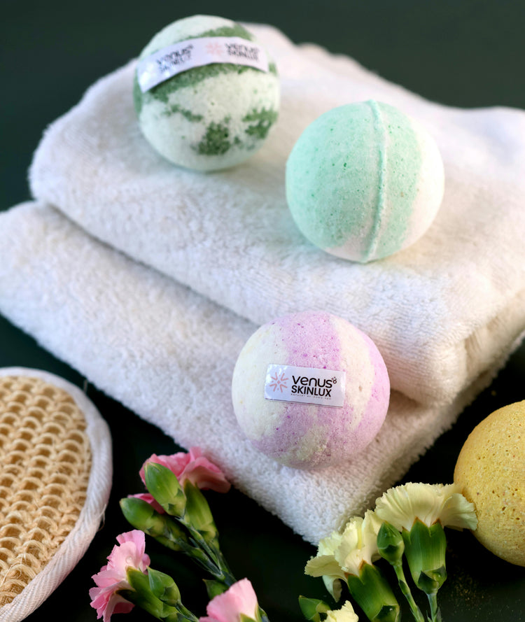 Bombas de baño con ingredientes naturales cuidadosamente seleccionados, que no solo suavizan el agua, sino que también cuidan la piel, dejándola hidratada, nutrida y con una agradable sensación de frescura.