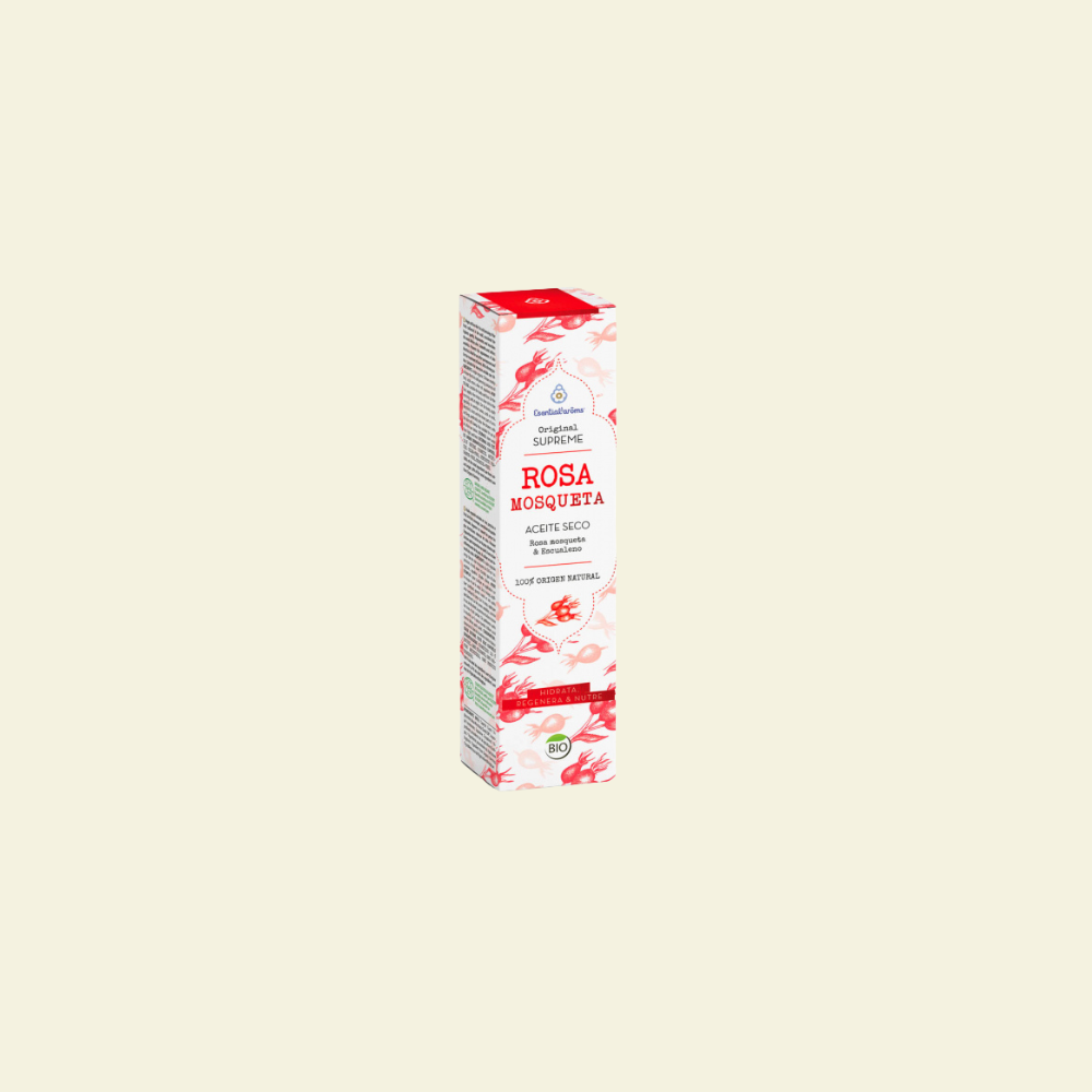 El Aceite Seco de Rosa Mosqueta de Essential Aroms incorpora en la fórmula original ácidos grasos de cadena media que conceden a este maravilloso aceite vegetal la propiedad de absorberse rápidamente por la piel, es decir, un efecto seco sin igual que, no sólo no engrasa, sino que, además, suaviza la piel. Además, incorpora un fitoactivo único: el escualeno, procedente del aceite de oliva. El escualeno es un poderoso antioxidante que evita la pérdida de agua, restaura la elasticidad y suaviza las pieles más sensibles.
