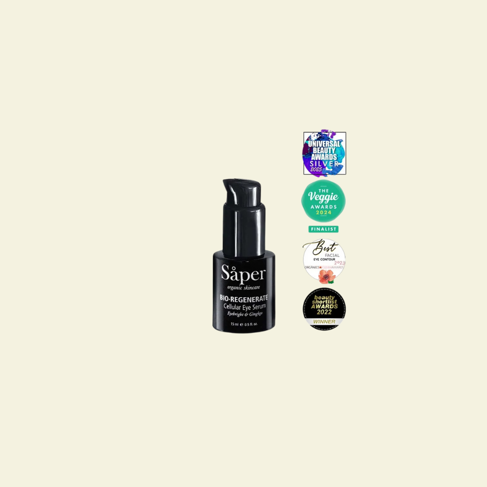 El Bio Regenerating Cellular Eye Serum de Saper es un contorno de ojos regenerador que hidrata en profundidad, revitaliza la piel y reduce visiblemente bolsas y ojeras, dejando una mirada descansada y luminosa. Su fórmula botánica, rica en antioxidantes, vitaminas y omegas 3, 6 y 9, alisa líneas finas, mejora la firmeza y protege contra el envejecimiento prematuro. Su textura ligera y de rápida absorción lo convierte en el aliado ideal para tu cuidado diario. Aplícalo con suavidad y tómate un instante para desconectar… tu piel también lo notará.