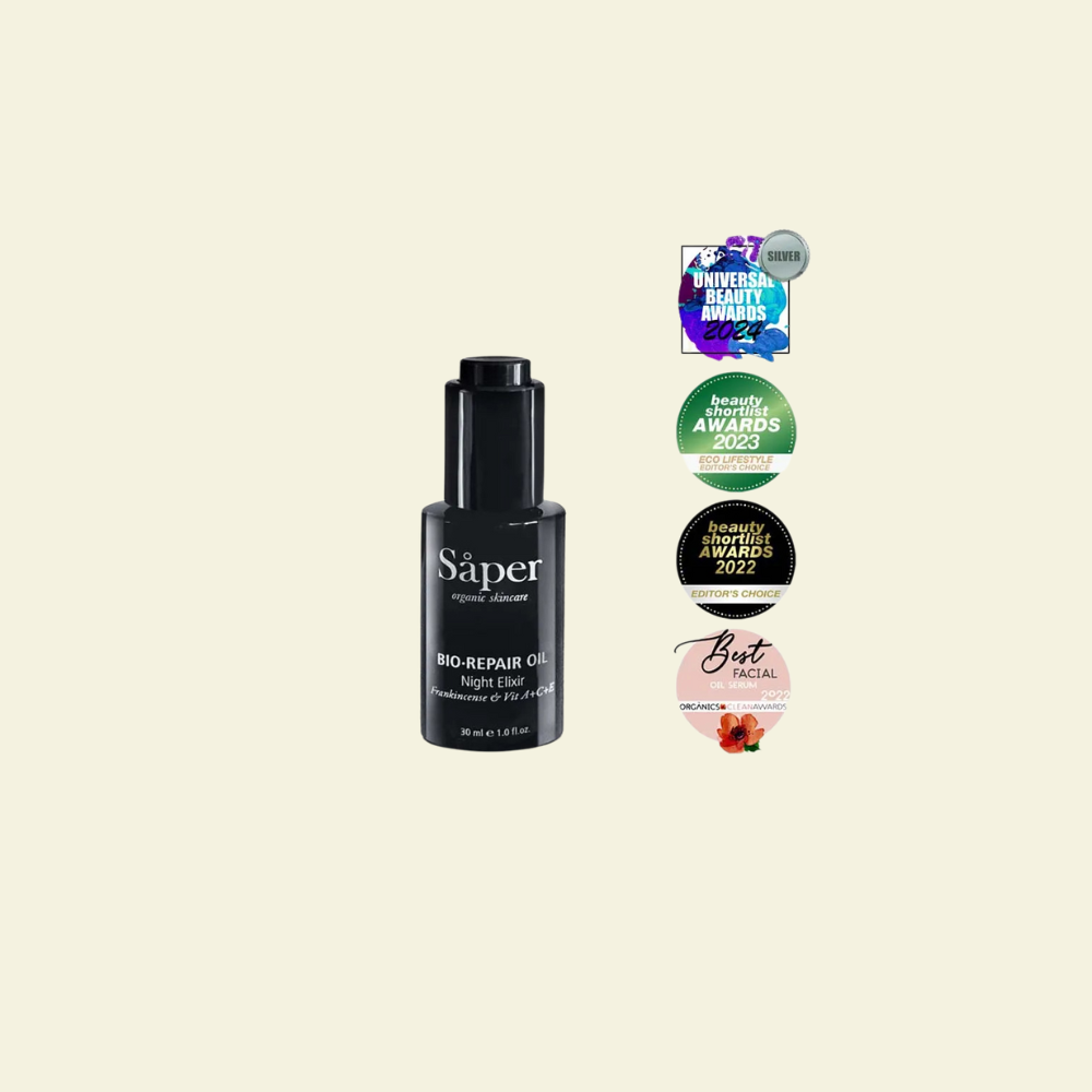 El Bio·Repair Oil Night Elixir de Saper es un tratamiento intensivo que actúa mientras duermes, nutriendo y reparando la piel en profundidad. Su combinación de aceites ecológicos y potentes antioxidantes fortalece la barrera cutánea, mejorando la elasticidad y firmeza. Además, su textura ligera y de rápida absorción lo convierte en un placer sensorial que relaja la piel antes del descanso.