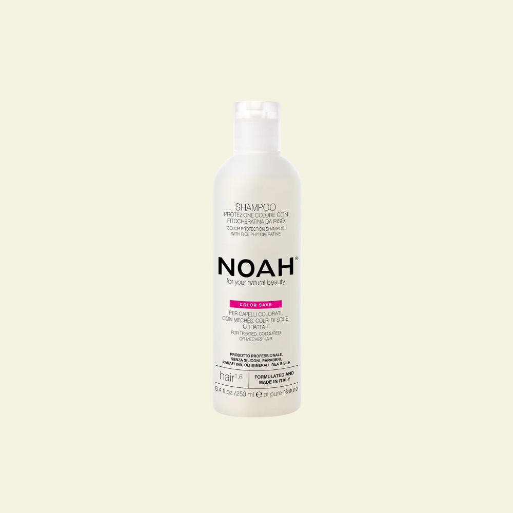 El Champú Protector del Color con Fitoqueratina de Arroz (1.6) de Noah es un champú específicamente para cabello teñido, formulado para proteger el color y realzar el brillo natural. Su base limpiadora suave, de origen vegetal y sin siliconas, cuida el cuero cabelludo y la fibra capilar. Aporta elasticidad, suavidad y luminosidad, prolongando la intensidad del color con un efecto duradero.