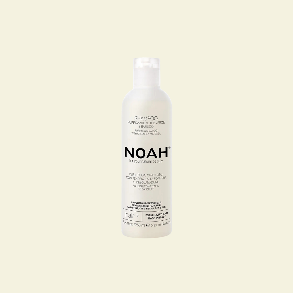 El Champú Purificante con Té Verde y Albahaca (1.5) de Noah es un champú con acción restauradora para el cuero cabelludo que tiende a la caspa. Su fórmula suave, con agentes limpiadores de origen vegetal, respeta el equilibrio natural del cuero cabelludo y del cabello. Gracias a su combinación de activos vegetales, limpia en profundidad, alivia el picor y devuelve vitalidad y frescura al cabello.