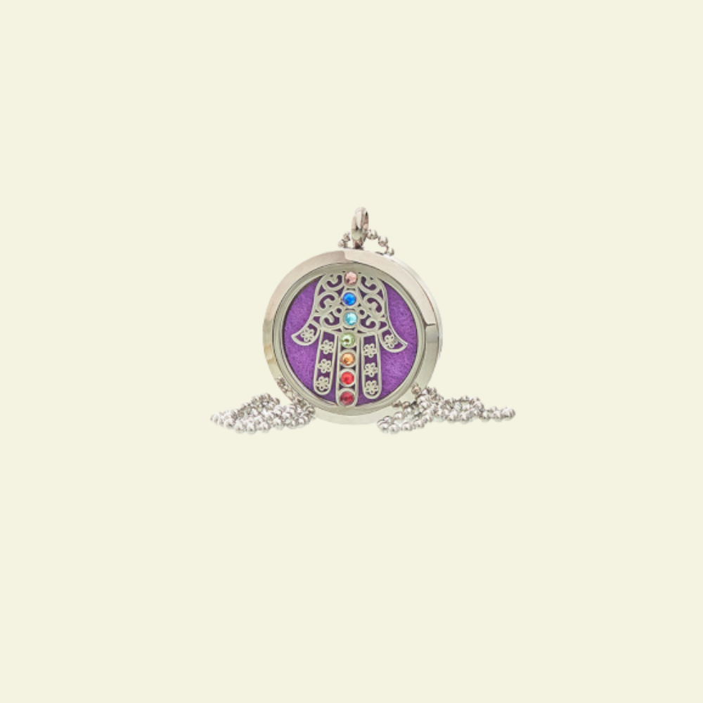 Estos collares difusores de aromaterapia te permiten llevar tu aceite esencial favorito a donde quiera que vayas, disfrutando de sus beneficios para la salud en todo momento. Cada medallón contiene una pequeña almohadilla en la que se aplican unas gotas de aceite esencial, que se difunde lentamente a través de los orificios de ventilación en la parte frontal. El aroma de tu aceite puede durar varios días, y siempre puedes agregar más aceite a la almohadilla cuando sea necesario. Además, este modelo brinda conexión con el equilibrio de los 7 chakras pues leva encastrados 7 brillantes del color de estos y proporciona una protección extra a tu campo energético.