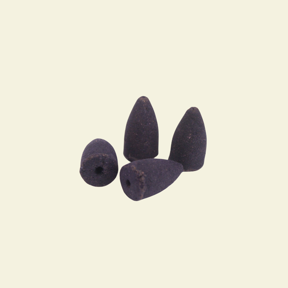 Una selección de varios aromas embriagadores cuya duración oscila los 30 minutos aproximadamente por cono. Su característica forma con un orificio en la base, hace que estos conos, puedan generar humo en forma de cascada siempre y cuando se utilicen con un soporte de incienso específico para conos de flujo inverso.