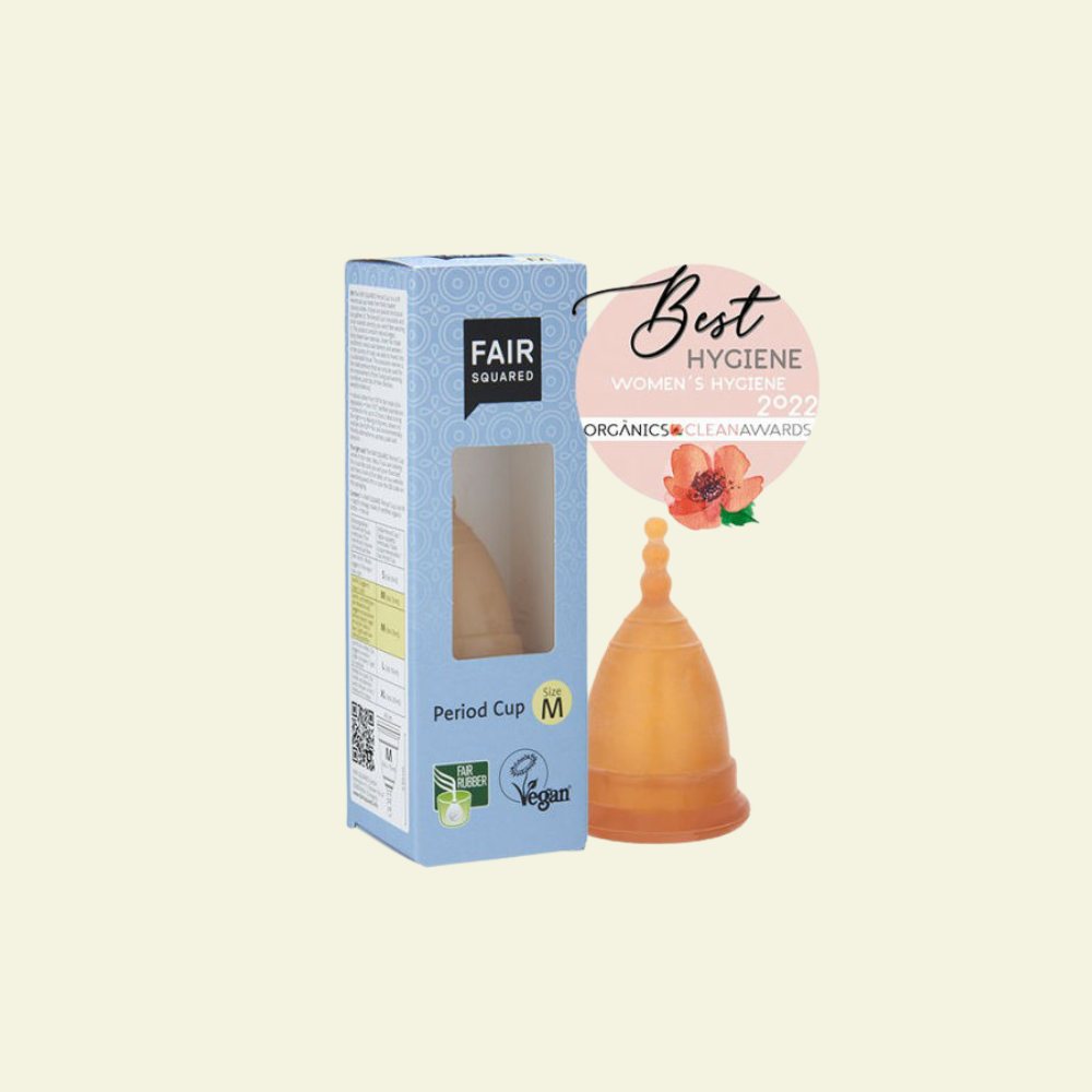 La copa menstrual Fair Squared es una copa menstrual suave, hecha de caucho natural procedente de comercio justo con un tacto suave y agradable. No absorbe el fluido menstrual sino que lo recoge. La copa menstrual se puede utilizar durante todo el ciclo menstrual, sin importar si el flujo menstrual es ligero o abundante. Te brinda una protección más prolongada ya que puede retener más de tres veces la cantidad de líquido menstrual que un tampón normal. La copa menstrual es reutilizable, se puede limpiar fácilmente con agua y una vez que sepas cómo insertarla correctamente, no la sentirás.