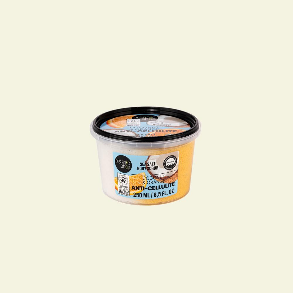 El Exfoliante Corporal Anticelulítico de Coco y Naranja con Sal Marina de Organic Shop es un tratamiento revitalizante que ayuda a mejorar la elasticidad de la piel y a reducir visiblemente la apariencia de la celulitis. Su fórmula combina la acción drenante de la sal marina con las propiedades hidratantes del aceite de coco y el poder tonificante del aceite de naranja. Ideal para alisar, nutrir y tonificar la piel desde la primera aplicación.
