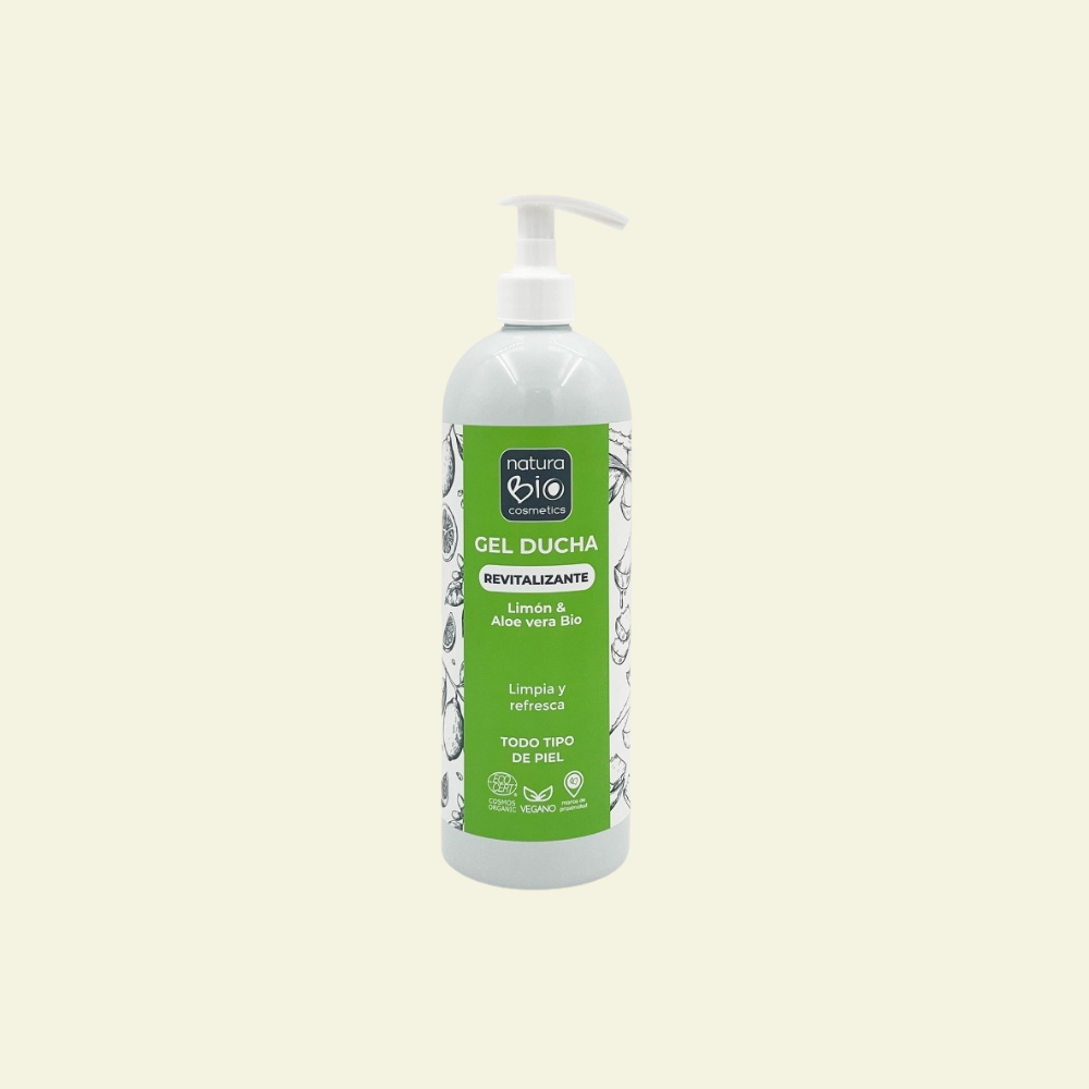 El Gel de Ducha Revitalizante Limón & Aloe de Naturabio es un gel de ducha natural que limpia suavemente y revitaliza la piel, dejando un aroma cítrico y fresco tras cada uso.