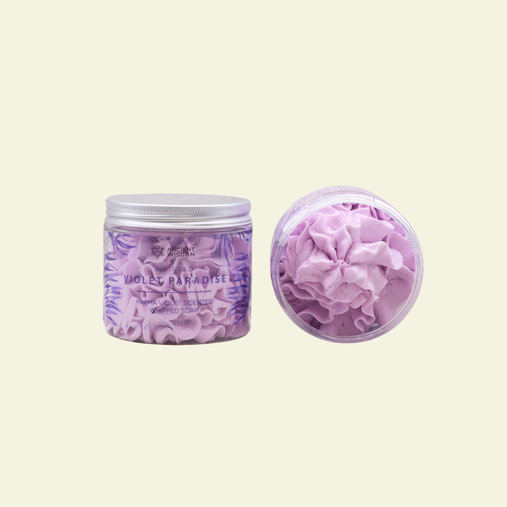 Descubre la suavidad incomparable del jabón batido con aroma a violeta de Parma. Su textura cremosa y ligera mima tu piel mientras su delicado y elegante perfume floral te envuelve en una experiencia sensorial única. Formulado con ingredientes respetuosos, es ideal incluso para pieles sensibles. Perfecto para usar en la ducha, el baño o como crema de afeitado, este jabón es una caricia para tu piel que transforma tu rutina diaria en un momento de puro placer.