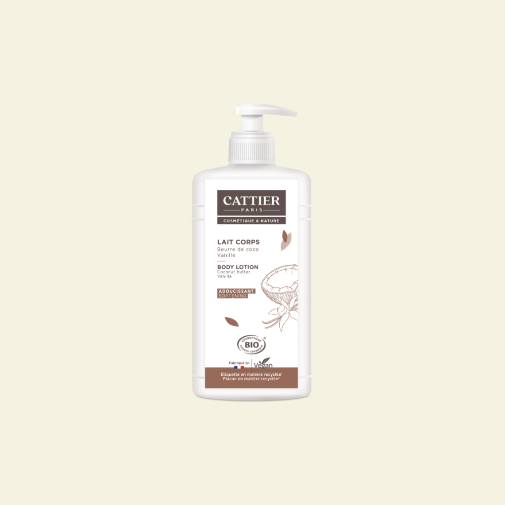 La leche corporal suavizante BIO de Cattier hidrata, relaja y suaviza la epidermis. Su fórmula enriquecida con aloe vera y manteca de coco, con propiedades hidratantes, nutritivas y protectoras, hace que la piel luzca suave y flexible. Su exótico aroma a vainilla y coco envuelve la piel en una delicada caricia satinada.