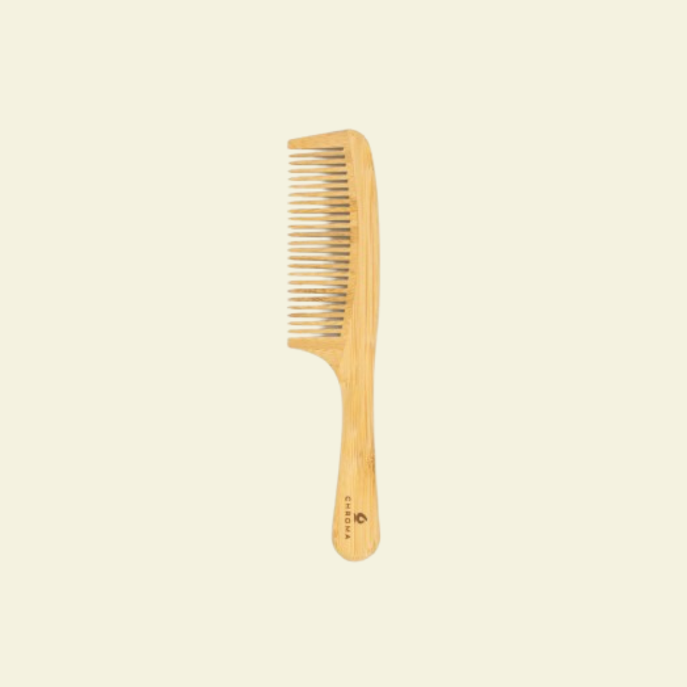 El Peine de Bambú para Desenredar de Chroma es una herramienta esencial para suavizar y desenredar el cabello con facilidad. Sus dientes anchos y espaciados permiten abordar los nudos y enredos sin tirar ni romper el cabello, lo que lo convierte en la elección perfecta para personas con cabello propenso a enredarse. Este peine es especialmente útil en cabello húmedo, después de la aplicación de acondicionador o productos desenredantes, pero también puede ser utilizado en cabello seco para mantenerlo suave y libre de enredos. Con un mango ergonómico para facilitar el peinado.