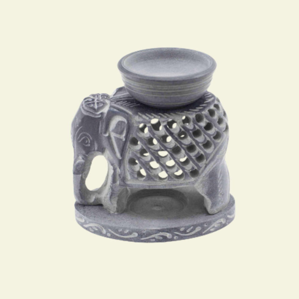 Los Quemadores de Esteatita combinan elegancia, durabilidad y eficiencia, siendo la opción ideal para una experiencia aromática refinada. La esteatita, una piedra natural conocida por su resistencia al calor y atractivo visual, tiene una textura extremadamente suave, similar al jabón al tacto, añadiendo un elemento de lujo a tu experiencia. Elaborados artesanalmente en la India, donde se encuentra esta roca única, cada quemador es una pieza de arte que no solo será duradera, sino también una hermosa adición a tu hogar. Estos quemadores ofrecen una distribución de calor uniforme, permitiendo que los aceites esenciales liberen sus fragancias de manera constante y efectiva. Este modelo, con su encantadora forma de elefante, añade un toque especial y distintivo a cualquier espacio. En muchos países de Asia, el elefante es considerado un símbolo de suerte y prosperidad, lo que hace que este quemador no solo sea funcional, sino también un amuleto de buena fortuna.