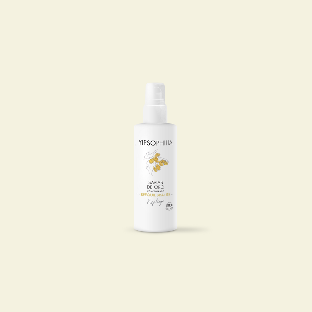 Savias de Oro concentrado reequilibrante Espliego de Yipsophilia es un tratamiento biológico de higiene y nutrición especialmente indicado para pieles mixtas con comedones (granos). Su composición suaviza y equilibra la epidermis. Se absorbe fácil y rápidamente, proporcionando una sensación de descanso y dejando la piel tersa. La aplicación de las Savias de Oro Espliego cierra el poro, calma y perfecciona la textura de la piel.