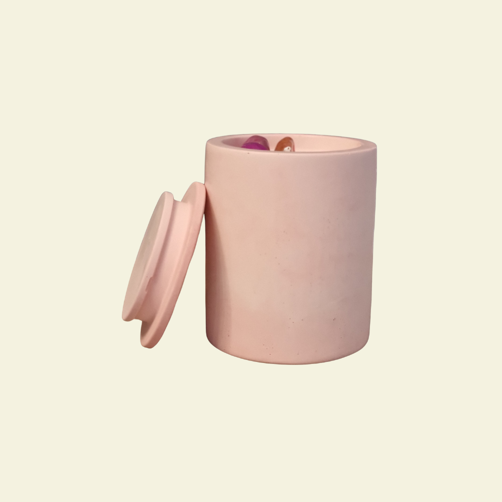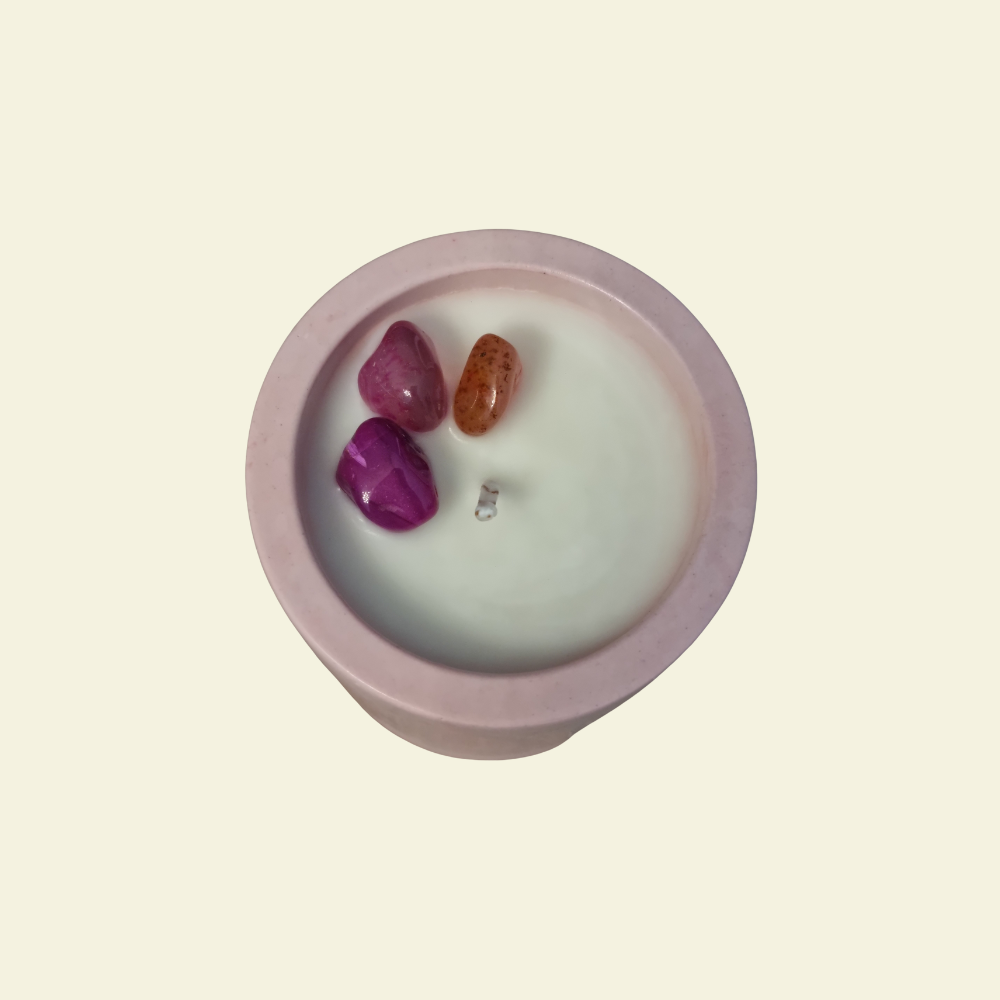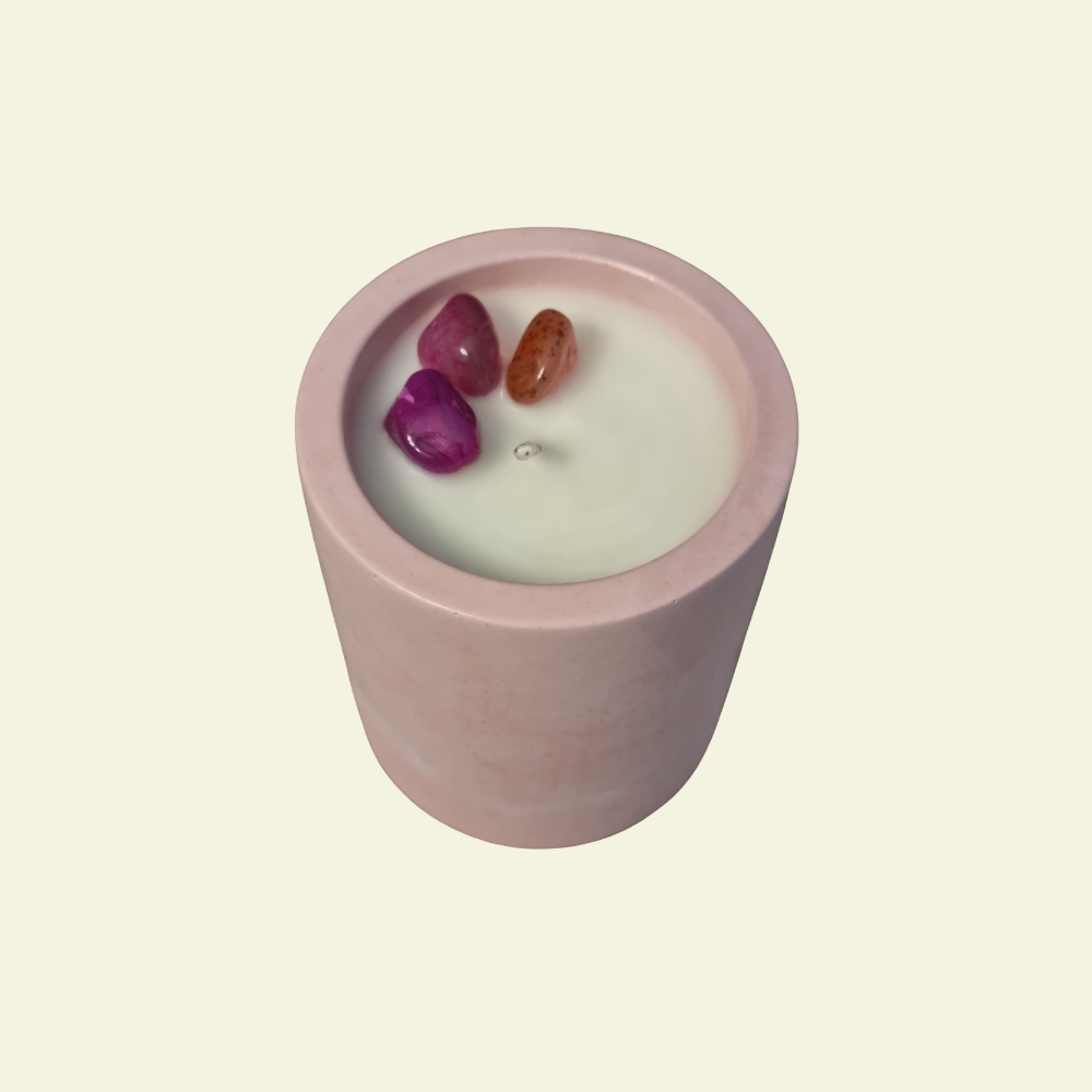 Deja que la suave luz de esta vela te envuelva, mientras te conectas con las propiedades del ágata rosa, una piedra que promueve la armonía emocional y la paz interior. Permite que su energía te ayude a cultivar el amor y a fortalecer las relaciones interpersonales, mientras disfrutas de un flujo suave de energía positiva en todo tu ser.
